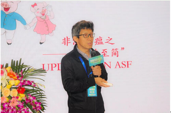 农业农村部种猪质量监督检验测试中心(广州)质量负责人樊福 好就“如何早期做好非洲猪瘟防控之大道至简”做了精彩演讲。樊福 好强调,针对目前非洲猪瘟的严峻形势,需要从饲料熟化、卫生管理、 健康养殖三个方面做好防控,并同时指出,饲料企业高温制粒(如 85℃3 分钟)可达到杀灭非洲猪瘟病毒的效果。