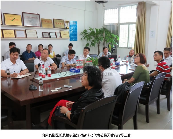 2015年10月29日下午,珠海天香苑生物科技发展股份有限公司迎来了斗门区副区长向成良及股权融资对接活动代表一行来到天香苑(831060)公司实地考察,了解天香苑生产经营发展情况。