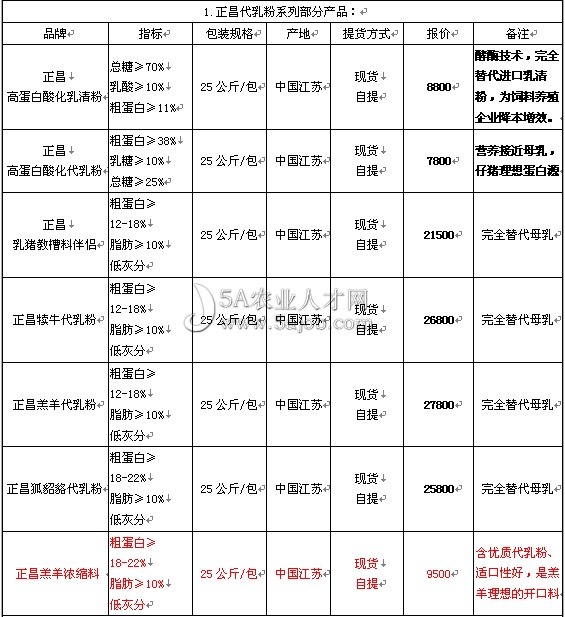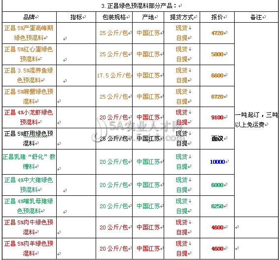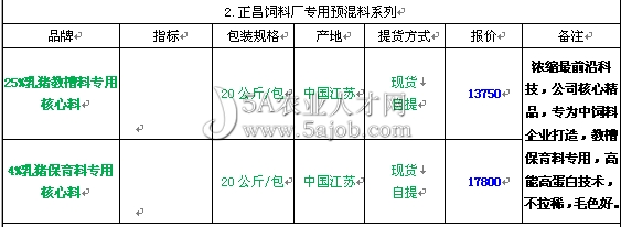 中外合资江苏正昌饲料科技有限公司部分产品报价