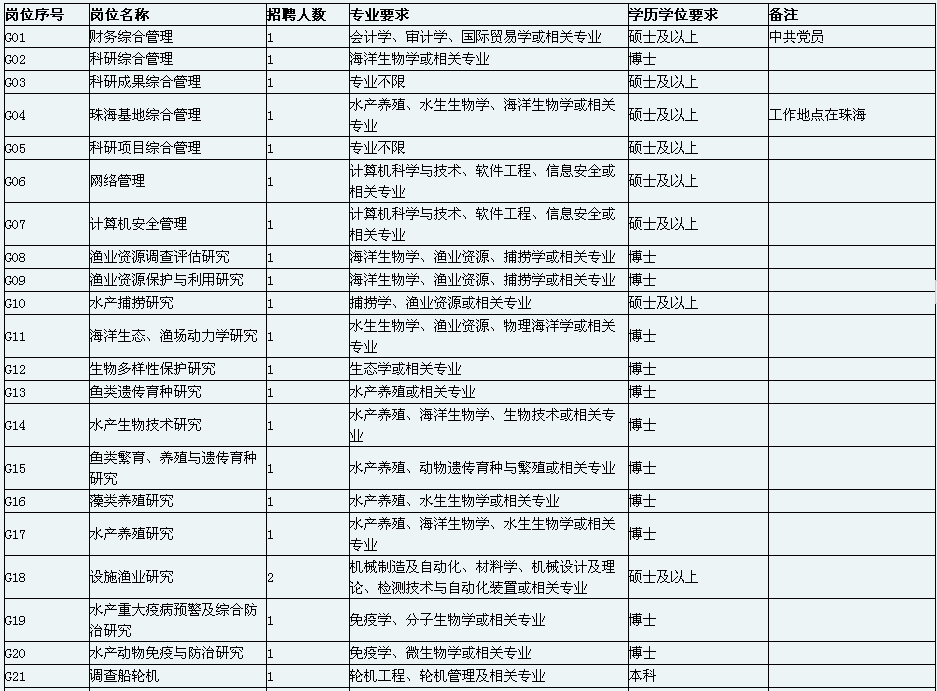 中国水产科学研究院南海水产研究所招聘