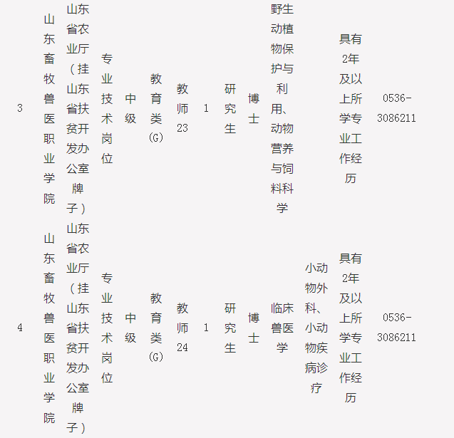 山东畜牧兽医职业学院2016年公开招聘工作人员简章