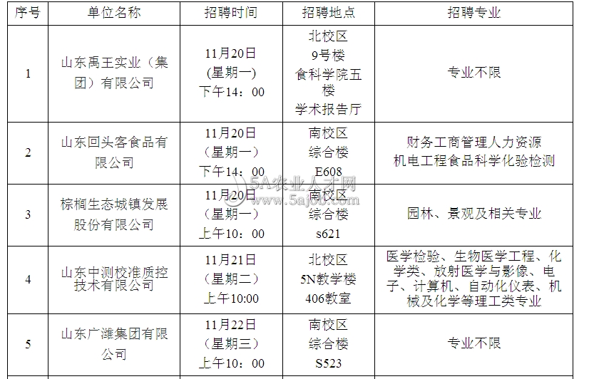 山东农业大学第十三周专场招聘会汇总(随时更新)