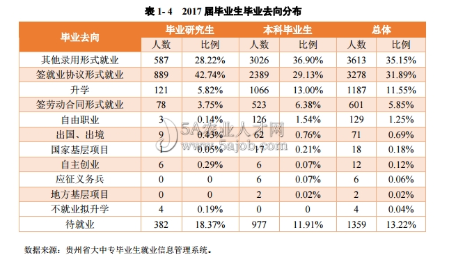 为全面反映毕业生的就业状况,建立起就业与人才培养良性互动的长效机制,学校根据教育部学生司《教育部办公厅关于编制发布高校毕业生就业质量年度报告的通知》(教学司函[2013]25 号)文件要求,编制和正式发布《贵州大学 2017 届毕业生就业质量年度报告》。本报告数据来源于两个方面:1.贵州省大中专毕业生就业信息管理系统。数据统计截止日期为 2017 年 8 月31 日。使用数据主要涉及毕业生的规模和结构、就业率、毕业去向、就业流向等。2.贵州省教育厅。毕业生调研数据,面向全校 2017 届毕业生;使用数据涉及就业相关分析及对教育教学的反馈部分。用人单位调研数据,面向本校毕业生所在用人单位;使用数据涉及用人单位对毕业生认可度及素质评价、用人单位对学校就业服务工作评价等部分。