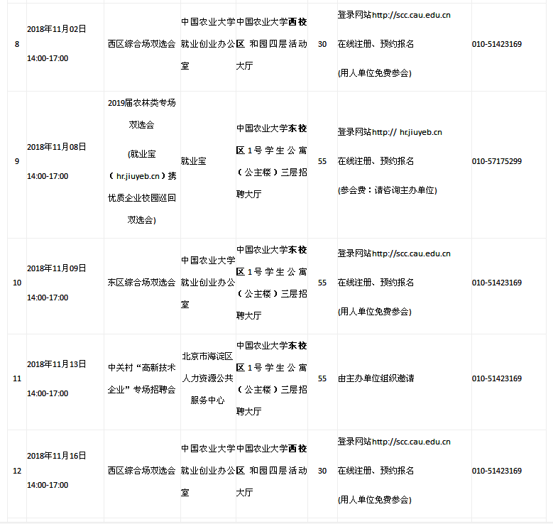 中国农业大学2019届毕业生校园招聘会邀请函(秋季学期2018.09-2018.12)